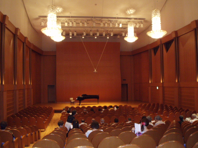 反響板は客席に音が流れるようステージの後の面にあるのですが、ピアノに脊を向けて歌っている「歌い手の声」が前方(客席)へ前方(客席)へと流れ、歌い手の後の位置でピアノ弾く私の耳には小音でしか流れてこなかったのです。ドキッでしたねぇ~あの時は